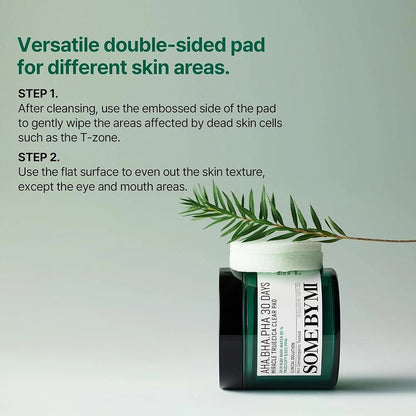 اكشفي عن نقاء بشرتك الطبيعي مع قطن التقشير اليومية 30 دايز ميراكل تروسيكا كلير باد من سام باي مي، المصممة خصيصًا لمكافحة الحبوب، وتنقية المسام، وتهدئة البشرة الحساسة. تحتوي هذه الوسادات المنقوعة مسبقًا على مزيج فعّال من أحماض AHA وBHA وPHA التي تعمل على تقشير خلايا الجلد الميت بلطف، تنظيف المسام بعمق، وتقليل التهيّج دون الإضرار بحاجز البشرة.