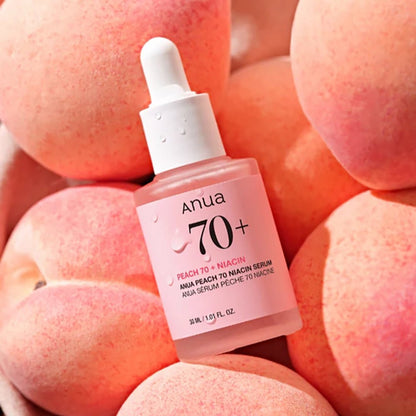 اكشفي عن إشراقة زجاجية ونضارة صحية مع سيروم أنوا خوخ 70٪ مع النياسين – 30مل، جوهرة من عالم العناية الكورية بالبشرة صُمّمت لتفتيح وترطيب البشرة في خطوة واحدة بسيطة.