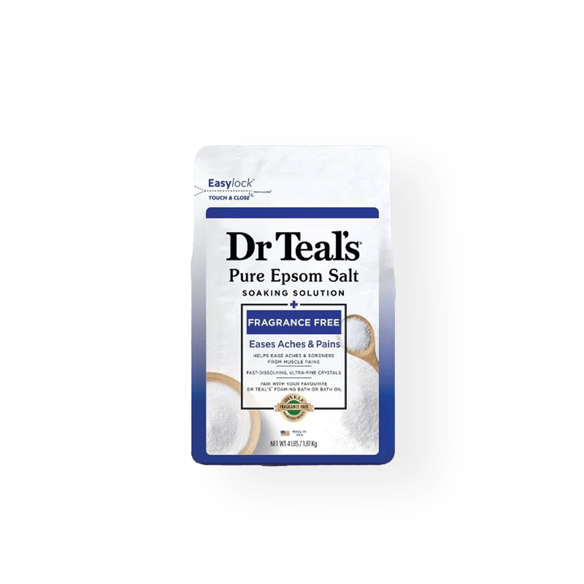 Dr Teal's Fragrance Free Soaking Solution consists of unscented Pure Epsom Salt (Magnesium Sulfate USP), which has long been known to help revitalize tired, achy muscles and help refresh skin's appearance. Pair with Dr Teal's Foaming Bath.